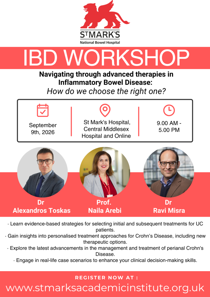 In person at Avery Jones Lecture Theatre, St Mark's Hospital, Central Middlesex Hospital, NW10 7NS and Online Via Zoom